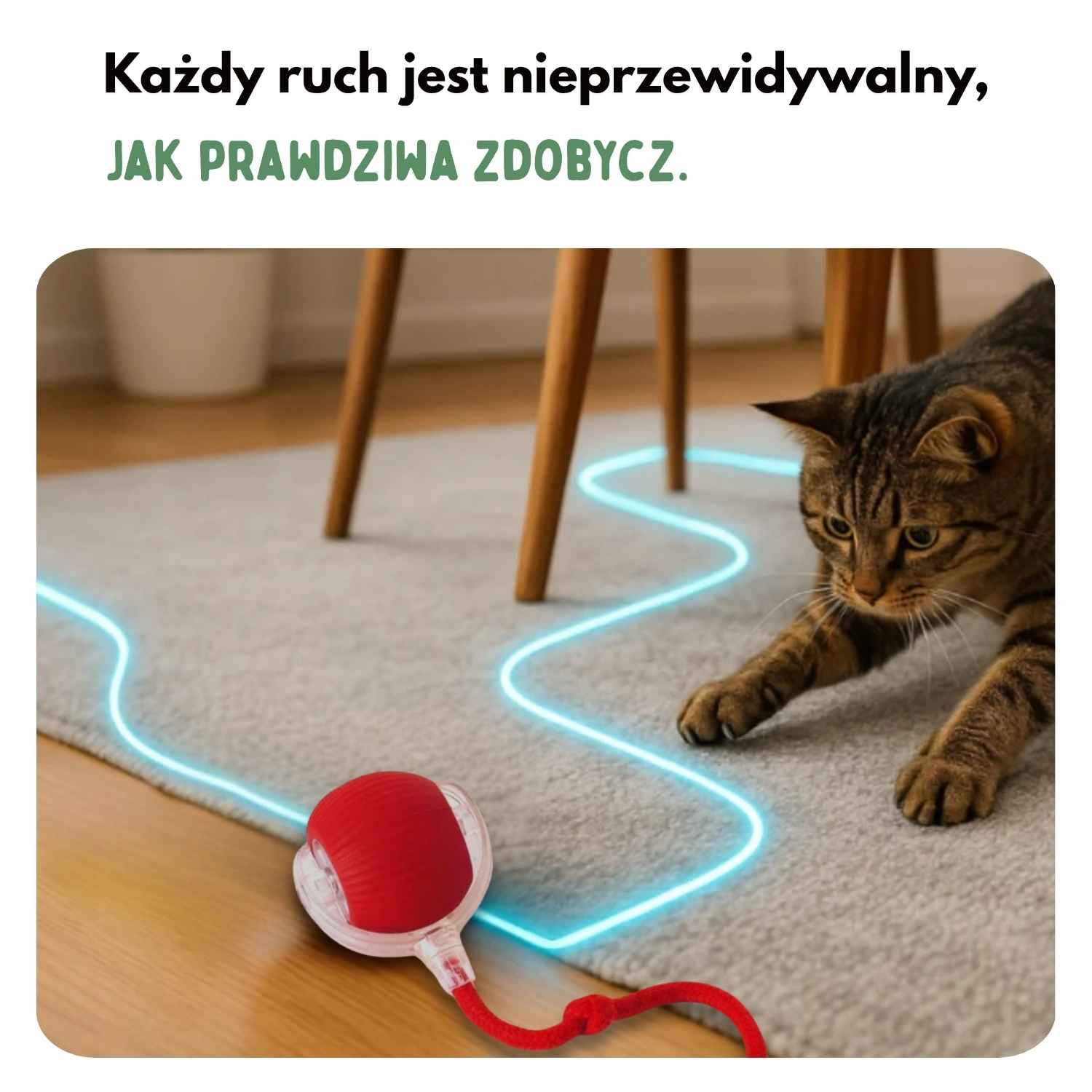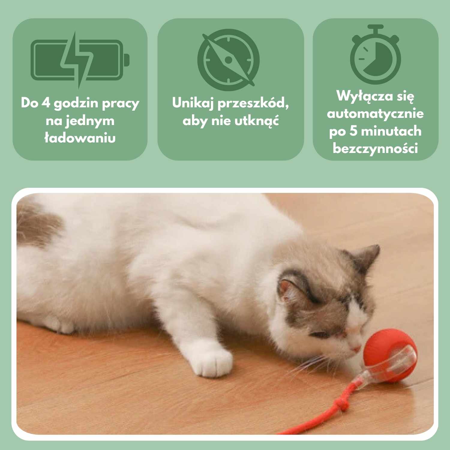 Zabawka jest zaprojektowana tak, aby była cicha i nie przeszkadzała ani twojemu kotu, ani domownikowi.